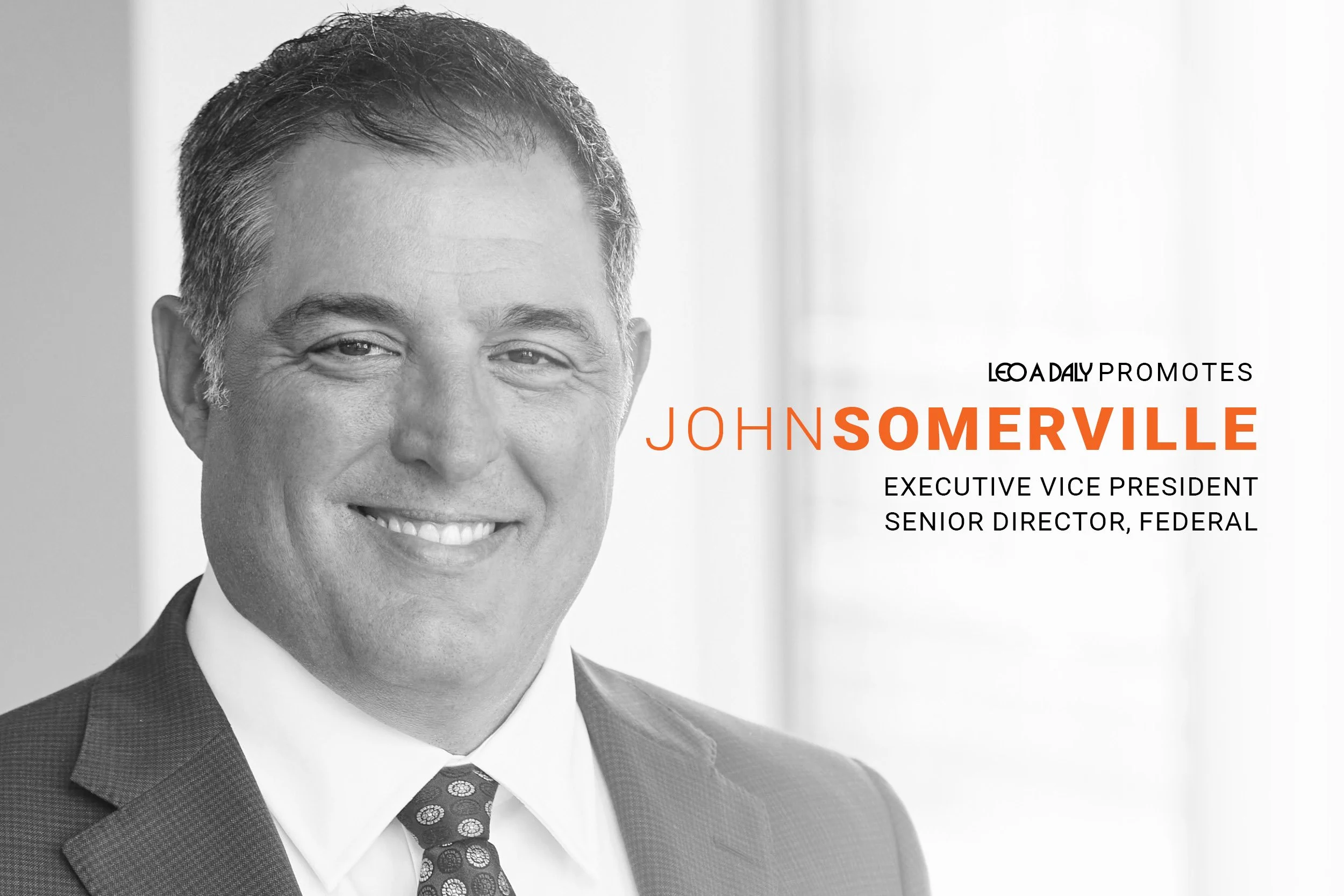 LEO A DALY, a nationally recognized planning, architecture, engineering, and interior design firm, today announced the promotion of John Somerville to Executive Vice President.