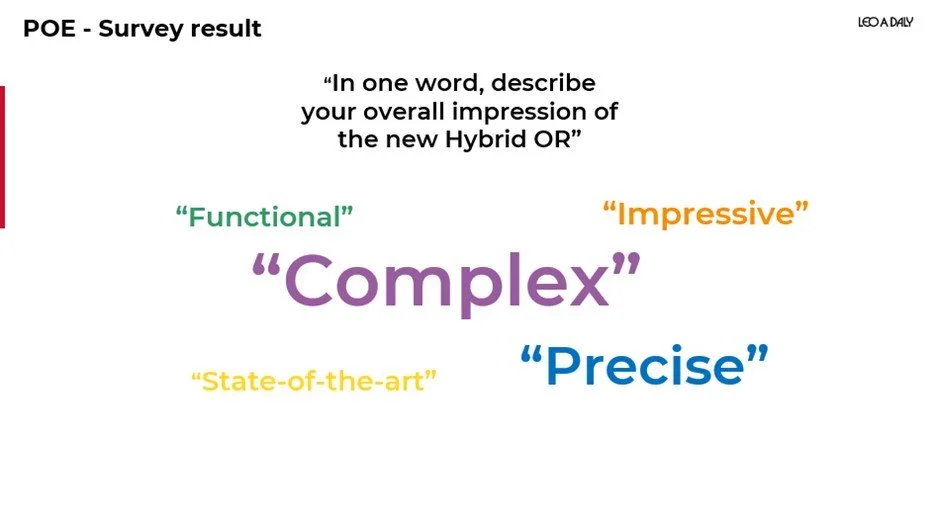 We ended the Survey with a choice of word to describe their overall impression of the new Hybrid OR. Overwhelmingly, the staff selected the word ‘Complex’ over other choices.