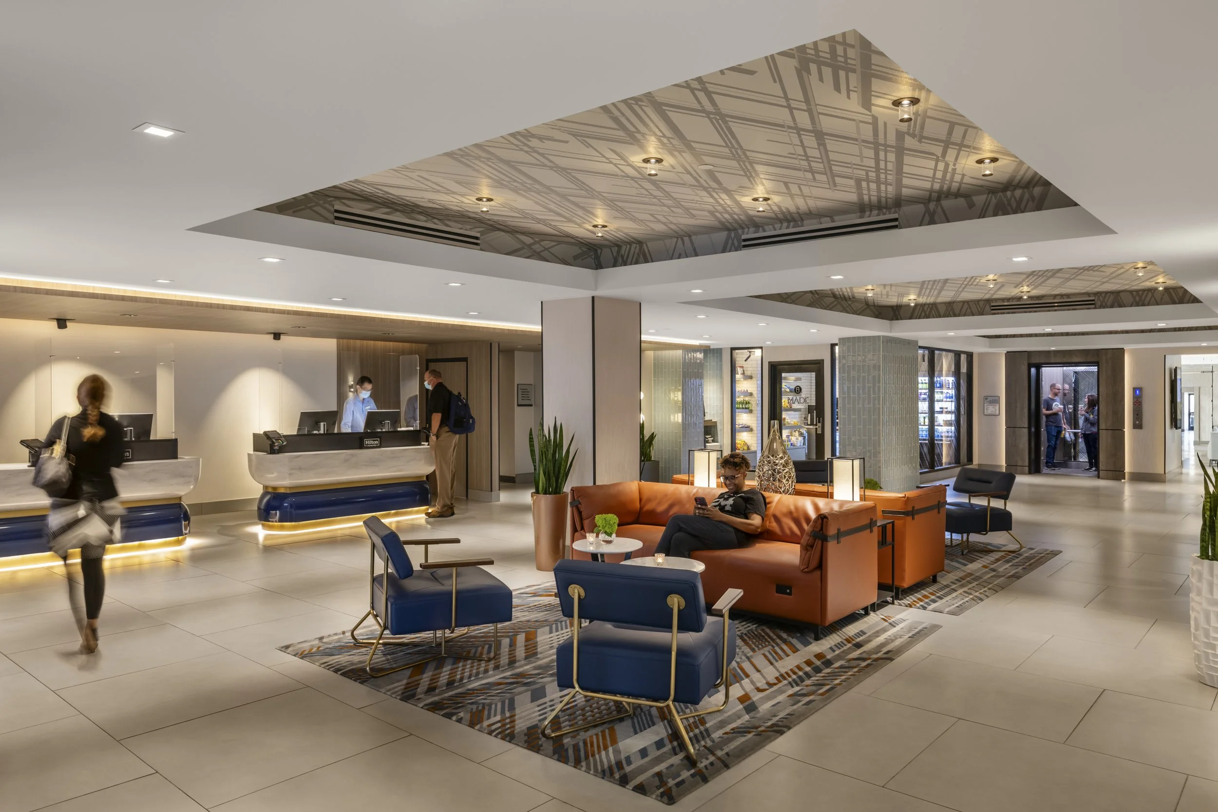 The ownership saw an opportunity to improve upon the guest experience through a brand conversion and interior design upgrade. LEO A DALY’s renovation design meets the new brand standards and refreshes the property through a comprehensive update to the hotel’s public areas, including the lobby reception, atrium, coffee bar, retail shop, restaurant, two meeting rooms, banquet room, boardroom, corridors, interior elevator cabs and public restrooms.