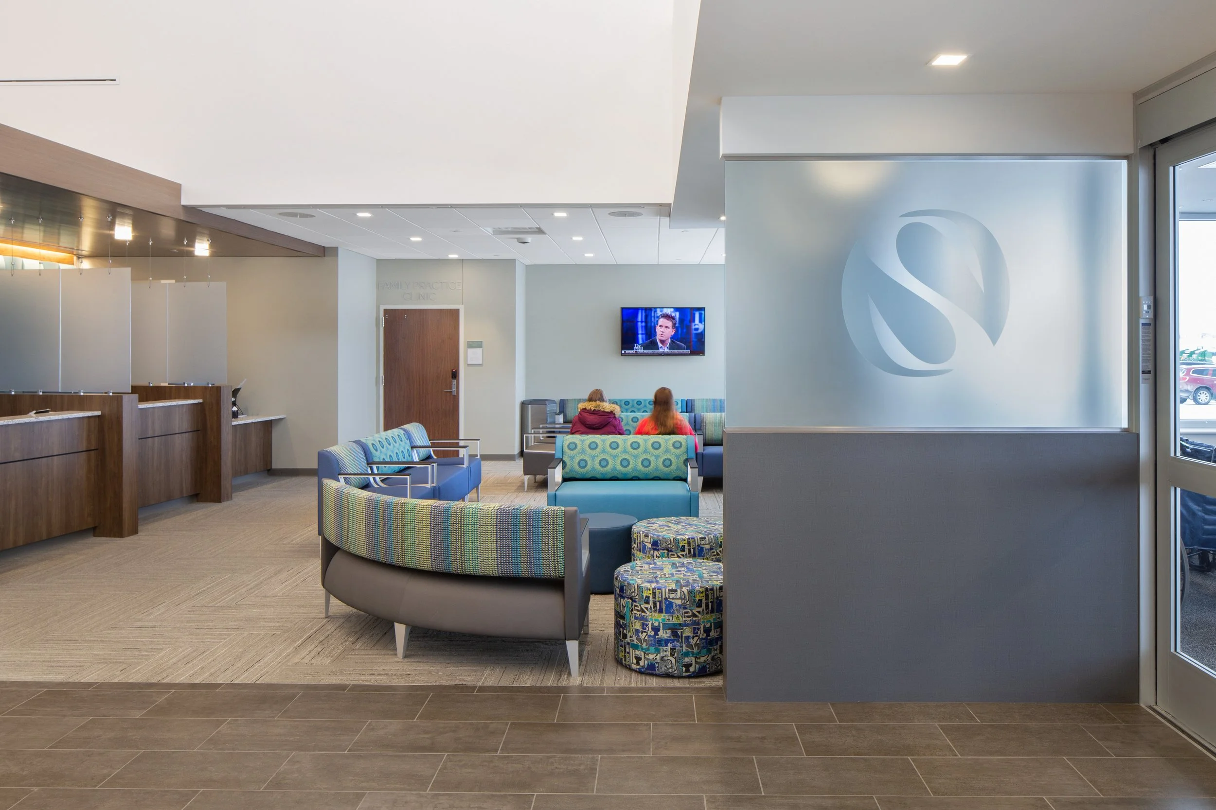The Syracuse Area Health Replacement Hospital in Syracuse, Nebraska is approximately 72,000 GSF in a one-story building and second level AHU penthouse. This includes hospital area of approximately 42,000 GSF, clinic and administration area of approximately 21,000 GSF, and central energy plant and ambulance bays using the remaining square footage. There is a one-and-a-half story lobby and public area joining the hospital and clinic. This space is used for general circulation and admissions waiting, as well as a central wayfinding area for distribution to hospital departments.